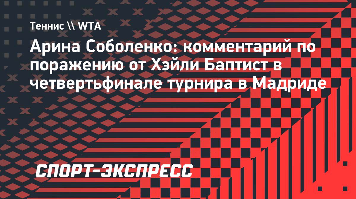 Первая ракетка мира Арина Соболенко сенсационно проиграла американке Хэйли Баптист в четвертьфинале Madrid Open, упустив победу в решающем тай-брейке.