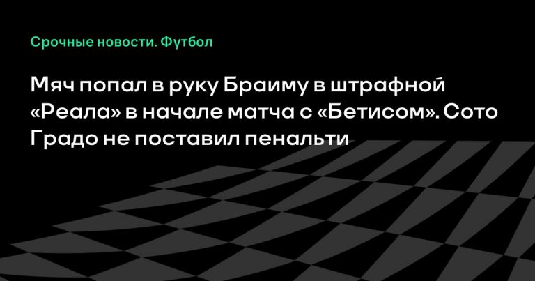 Судья Сото Градо не поставил пенальти в ворота «Реала» после попадания мяча в руку Браима Диаса в матче с «Бетисом». ВАР не вмешался.