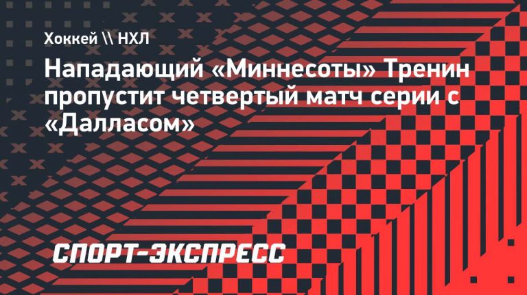 Российский нападающий «Миннесоты» Яков Тренин не сыграет в четвертом матче серии Кубка Стэнли против «Далласа» из-за травмы.